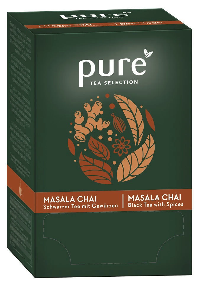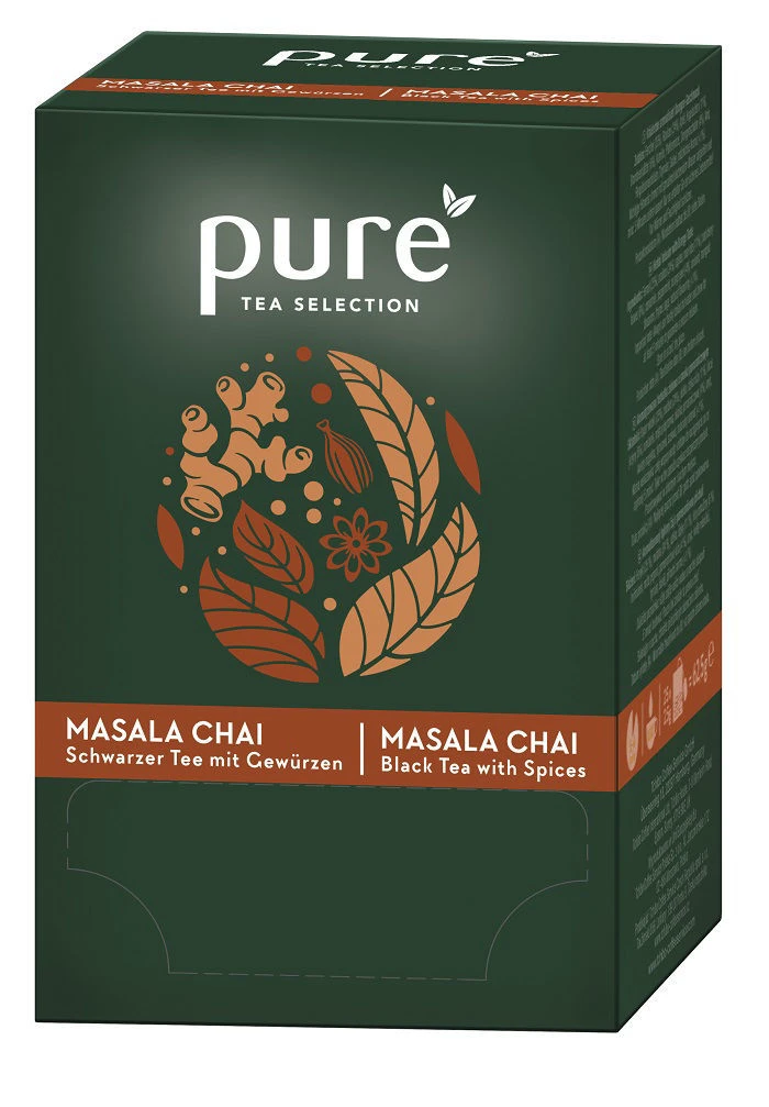Pure Tea Selection – odpočiňte si od všednosti a objevte skutečnou krásu malých věcí v životě. Výrazné vůně našeho čaje masala chai jsou okouzlující a umožňují vám vychutnat si kouzelnou rozmanitost Asie přímo na jazyku. Vychutnejte si naše čerstvé volné lístky čaje masala chai v ekologické síťovém sáčku.