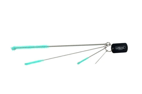Praktická univerzální sada 3 malých kartáčků různé velikosti a délky na čištění mléčných systémů kávovaru. K čištění napěňovačů mléka a mléčných systémů v plně automatických kávovarech. Tyto čisticí kartáčky jsou vhodné zejména k čištění malých hadic nebo úzkých míst v automatických napěňovačích mléka a plně automatických kávovarech. Tři různé délky a velikosti kartáčů usnadňují odstranění zbytků mléka. Kartáčky jsou spojeny kovovým kroužkem, takže máte vždy po ruce ten správný kartáček.
