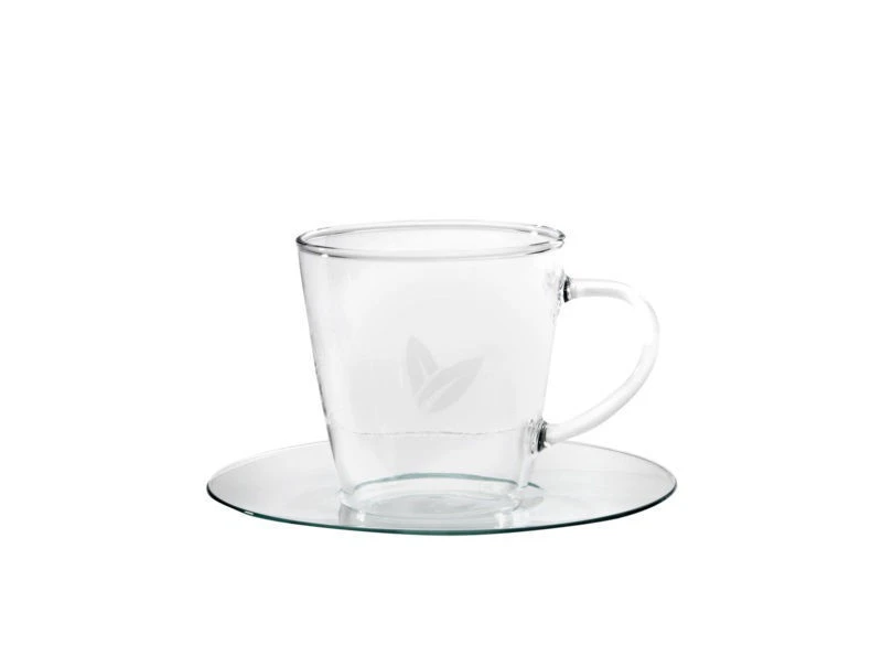 Pure skleněný podšálek na čaj vyrobený z vysoce kvalitního tepelně odolného skla, dostupný pro šálek ve velikosti 300 ml – ideální pro sáčkový čaj Pure Tea Selection.