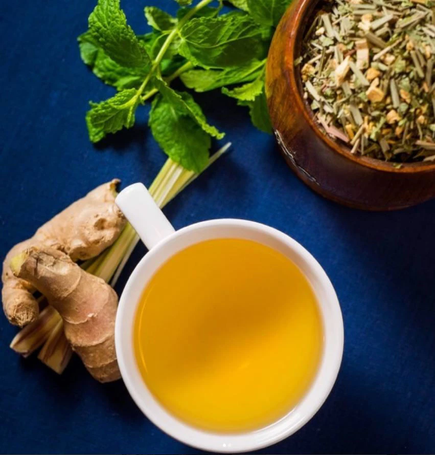 Složení: Citronová tráva (28%), zázvor (15%), kořen lékořice, semínka kardamonu, verbena, máta peprná (peppermint), pepř, máta peprná(spearmint).